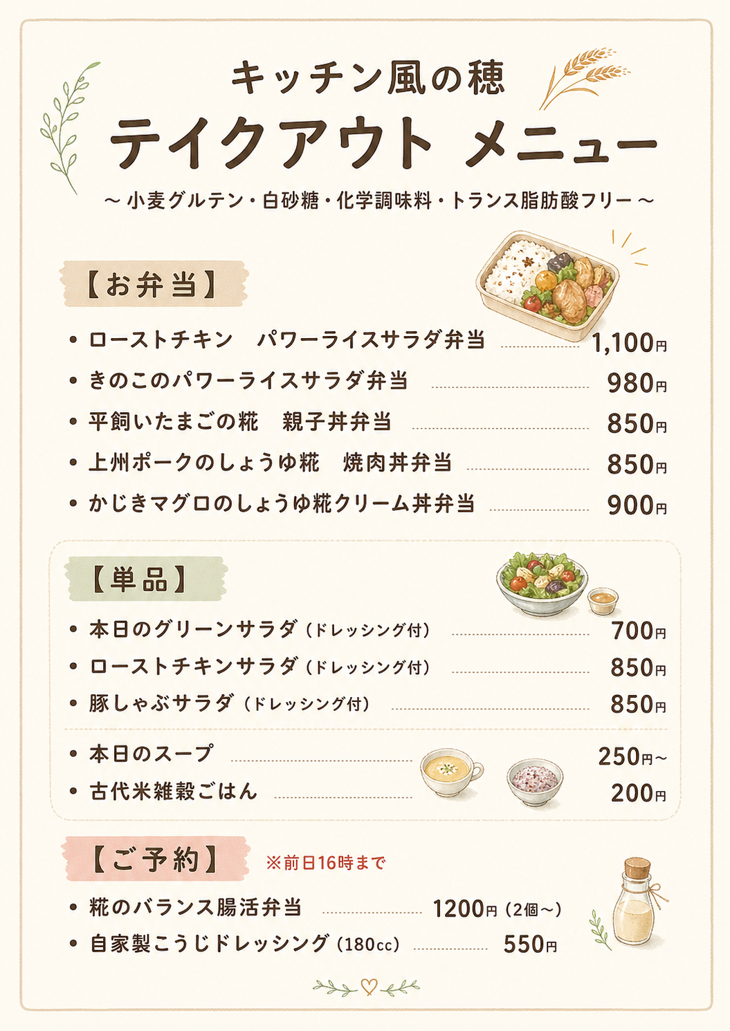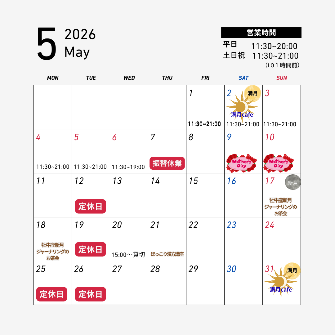 定休日 火曜日のみ(第4月曜23日は営業します) 3月26日㈭は都合により15時閉店となります。 |