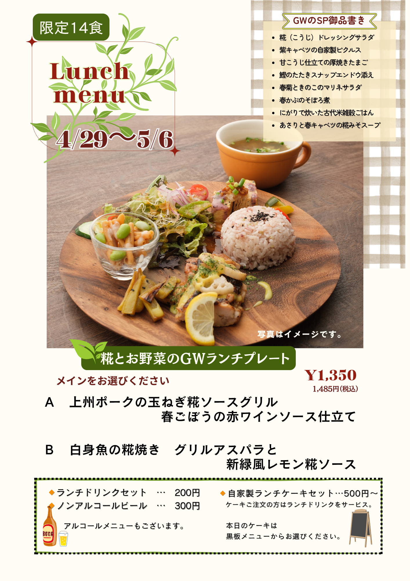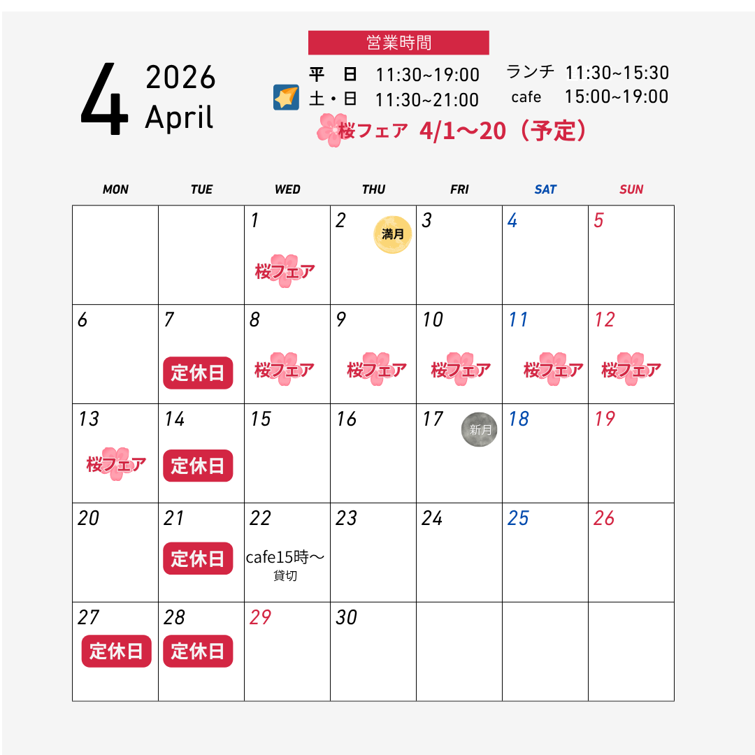 4月27日㊊・28日㈫は定休日のため連休とさせていただきます。