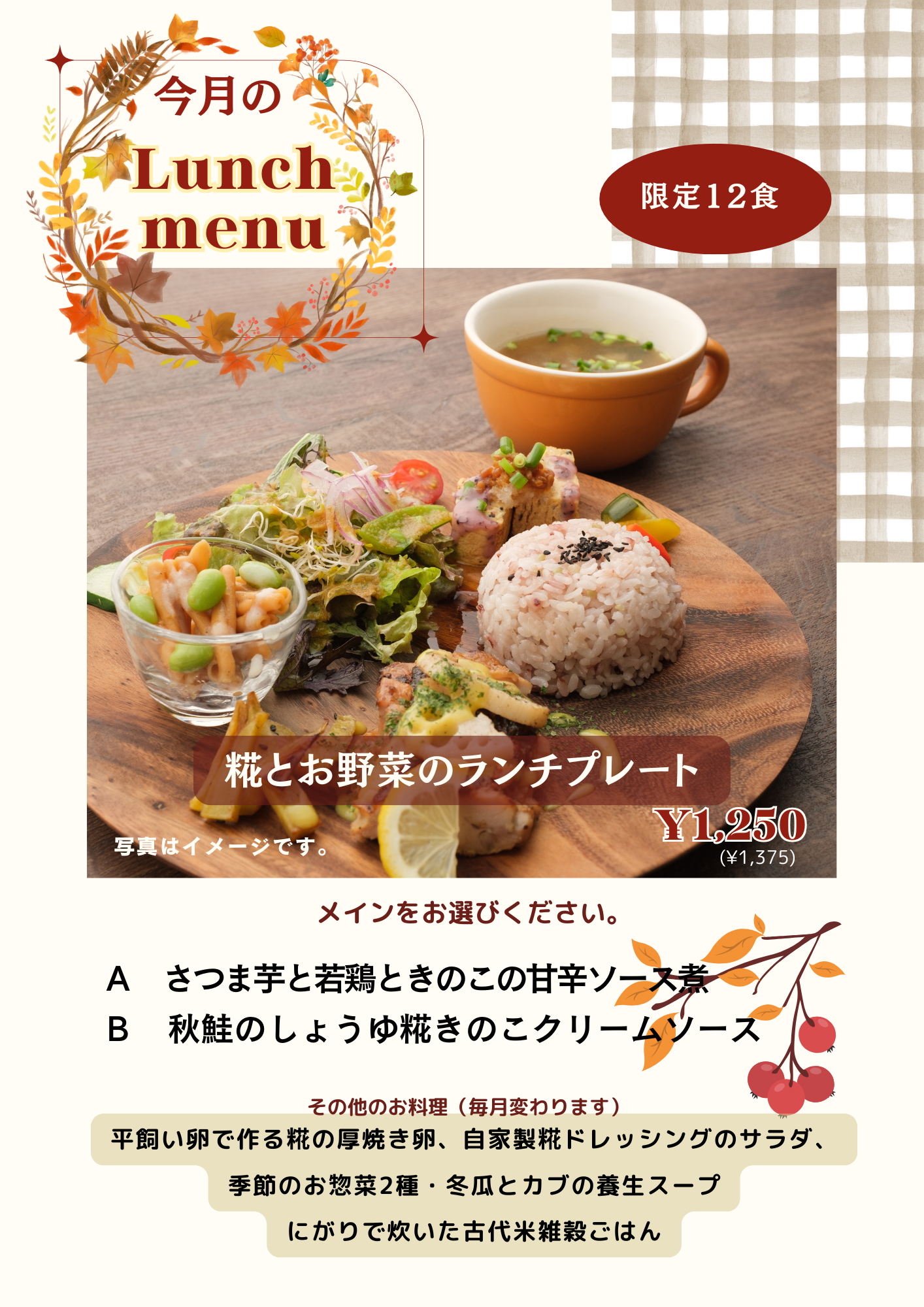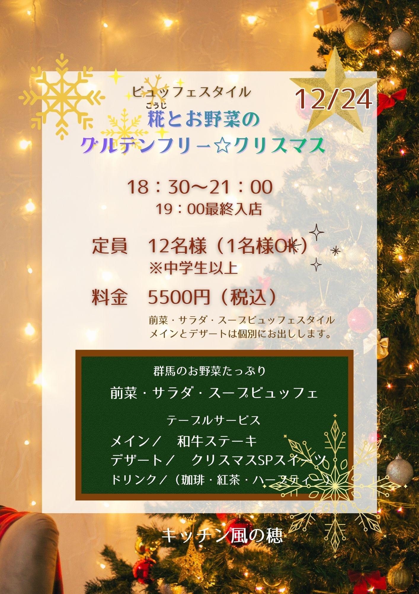 | 糀とお野菜のクリスマスディナー | 12月24日㈬ 18:30スタート。15名様限定。 前菜・サラダ・スープはビュッフェ形式。メインとデザートはテーブルサービスというパーティースタイルです。ご予約は21日まで。 |